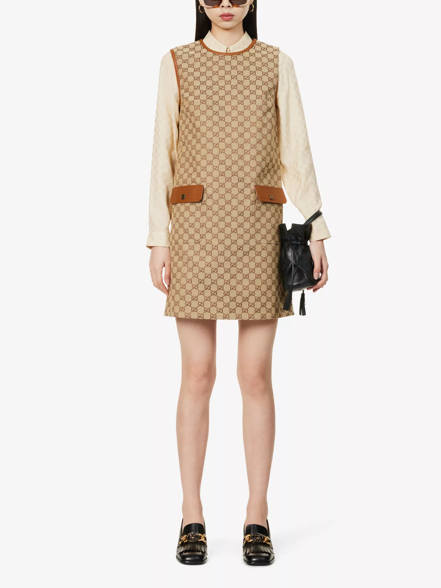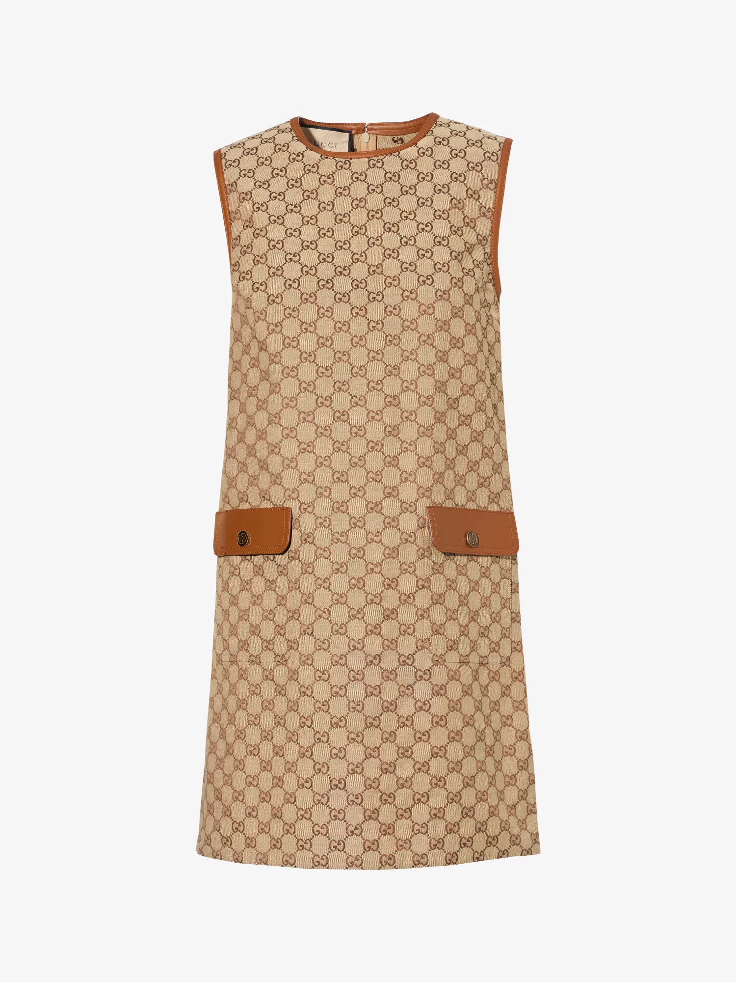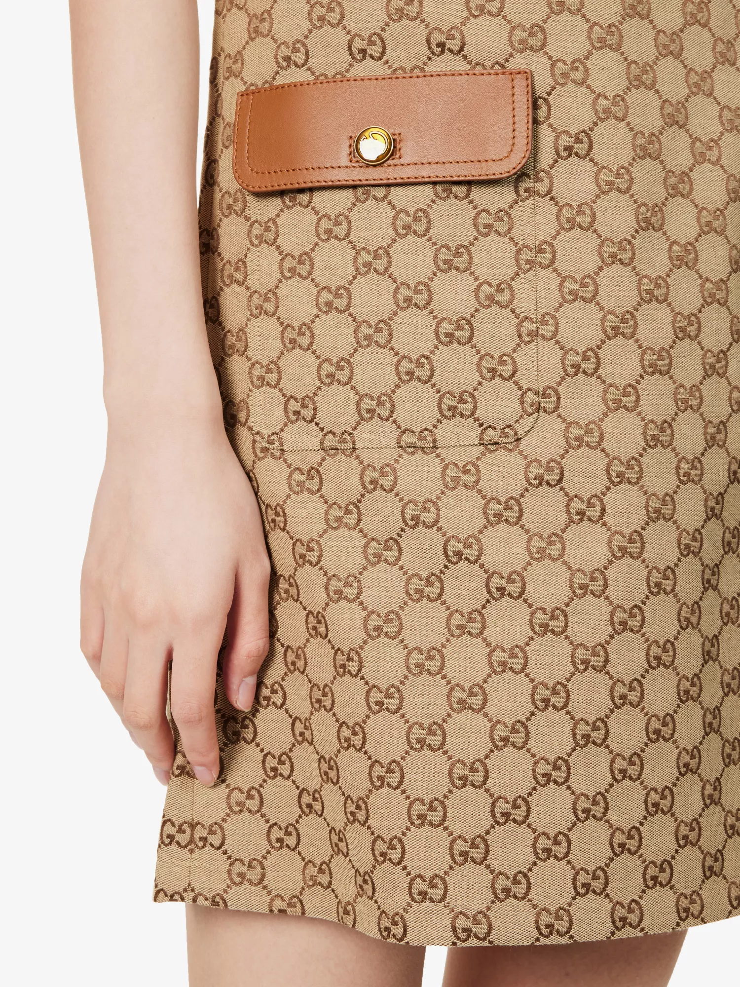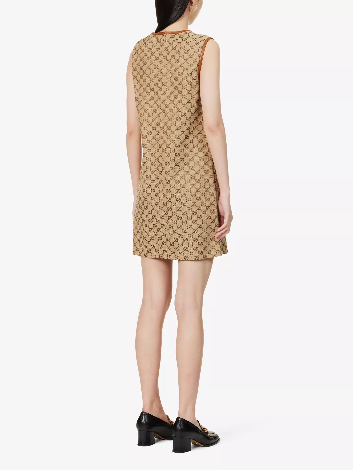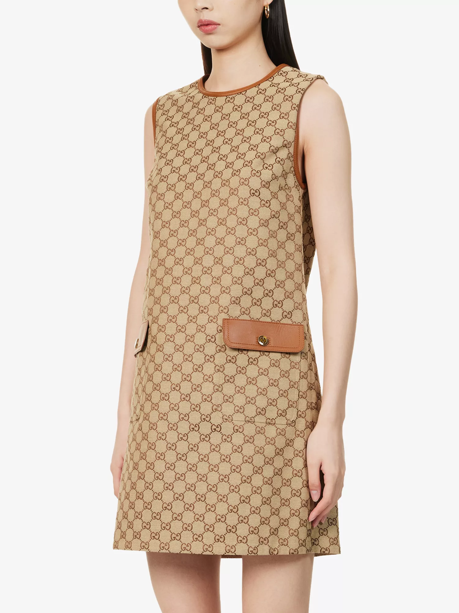 Monogram-pattern-sleeveless-cotton-blend-midi-dress-