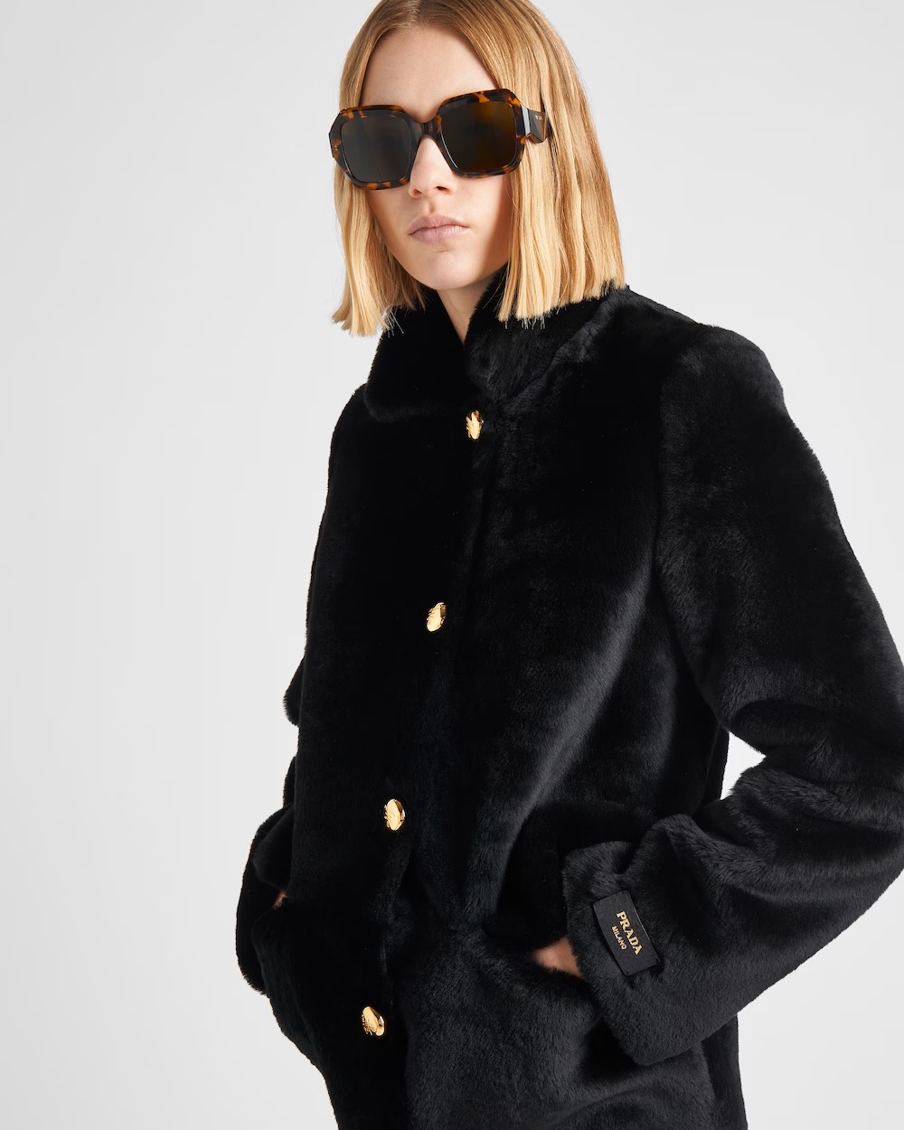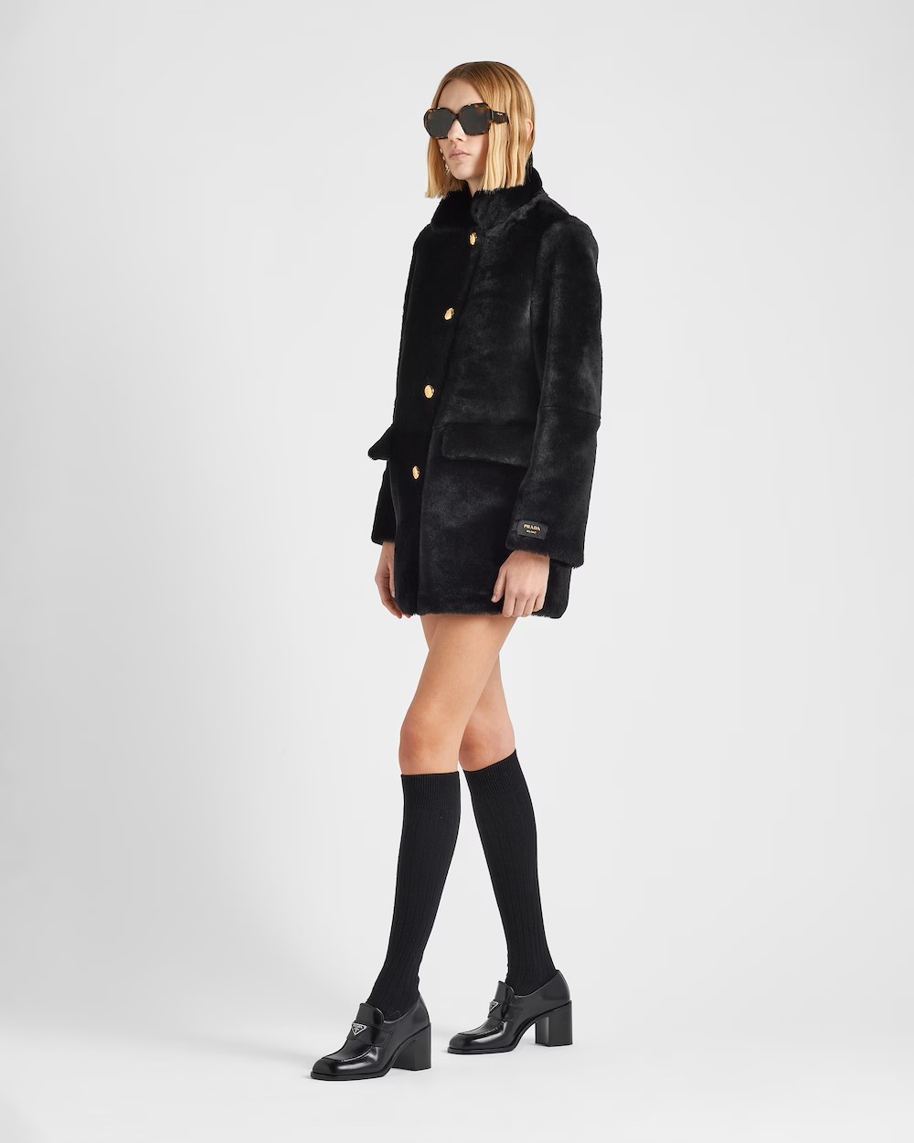 Shearling fur coat black1