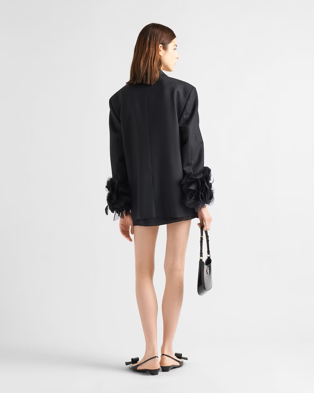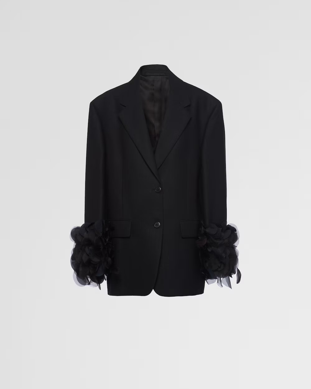 Single-breasted wool jacket with feather trim Black1